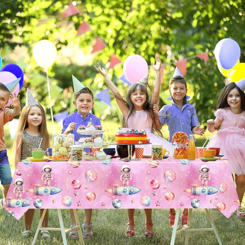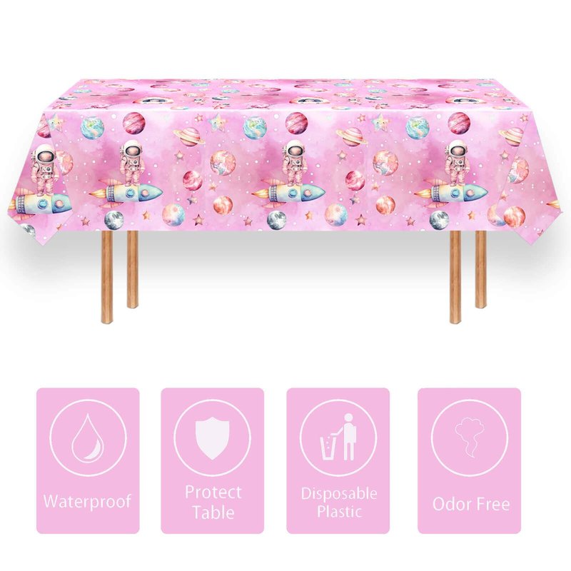 - Package Contents: 1pc 54" x 108" pink outer space table cloth, 10pcs 7 inch paper plates, 10pcs 9 inch paper plates, 20pcs 6.5inch napkins, 10pcs 6.3inch forks. You don't need to spend extra time to choose, so you will spend more time with your party