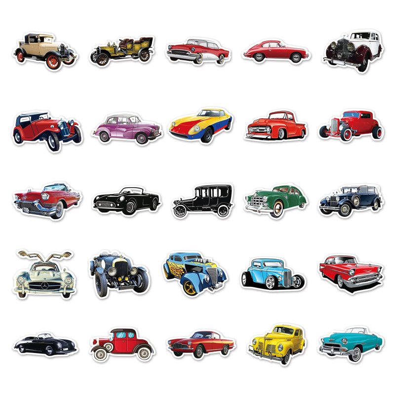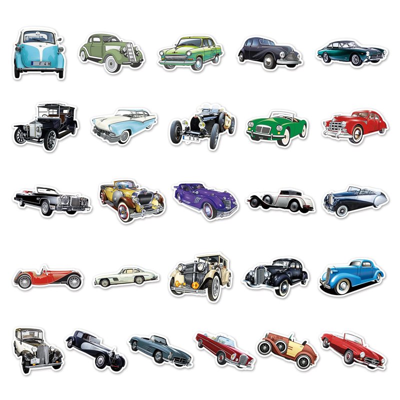• WHAT YOU GET - 51 pieces different 2-3" vintage car stickers. No duplicates, the pattern shown in the main picture will appear in your package.