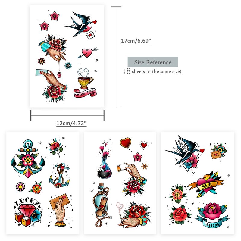 These retro temporary tattoos offer a unique way to express yourself with beautifully designed stickers. Featuring innovative retro patterns and small tattoos, these tattoos provide fun self-expression for all ages. With tattoos ranging from playful cartoon characters to elegant floral designs, you're sure to find the perfect match for your style. The temporary tattoos are easy to apply like stickers and last for several days, allowing you to change up your look without a permanent commitment. They're also ideal for decorating at parties or giving as gifts. With their eye-catching retro designs, these temporary tattoos are sure to spark creativity and conversations.