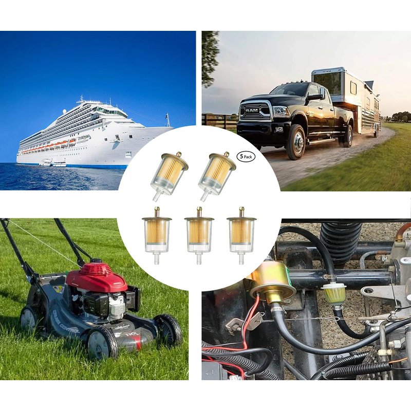 5/16" Universal Fuel Filters Industrial Tractors Cars Trucks Motorcycles Gas Powered Engine Inline Gas Fuel Line 5 Pack