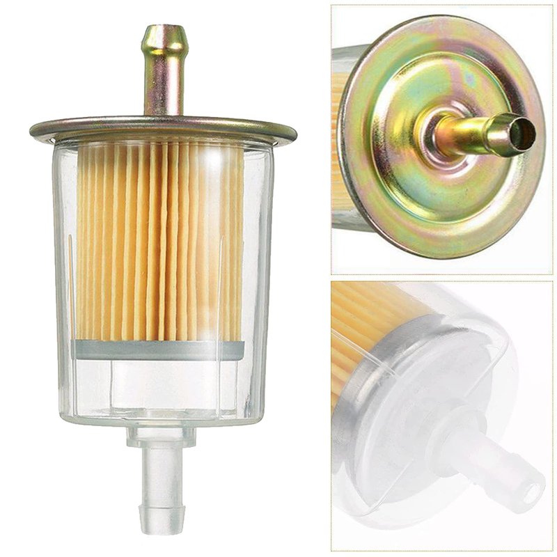 - 🚙5/16 " IN-LINE FUEL FILTER— Fuel Filter Fits 5/16 "Oil Pipe-5/16" Joint Or Connector At Each End, Transparent Plastic Shell, Orange Inner Filter, With Metal Brass End Caps On The Top And Bottom Of The Filter, Filter Out Impurities And Precipitation In Gasoline, Reduce Parts Wear And Protect The Engine, Direct Installation, Simple And Convenient.