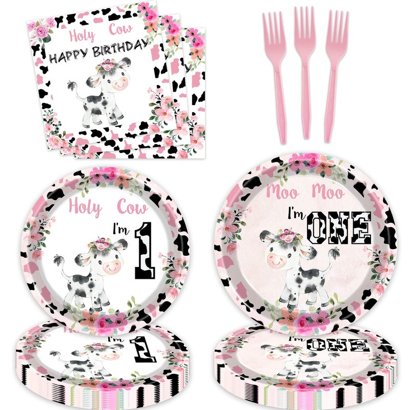 - High-Quality Material: We chose stronger plates and softer napkins than others. Pink holy cow i am one birthday party plates and napkins are made of high-quality paper and are safe for both children and adults. Using these party tablewares will make your party more enjoyable.