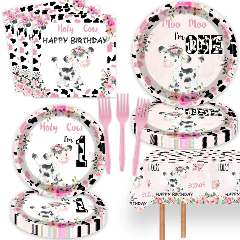 - Many Occasions: Holy cow girls 1st birthday party supplies is great to decorate farm animals 1st birthday party, holy cow baby shower party, Girls 1st birthday party, etc. Moo Moo I'm one party supplies can make your party theme more distinct, and the party atmosphere more high.