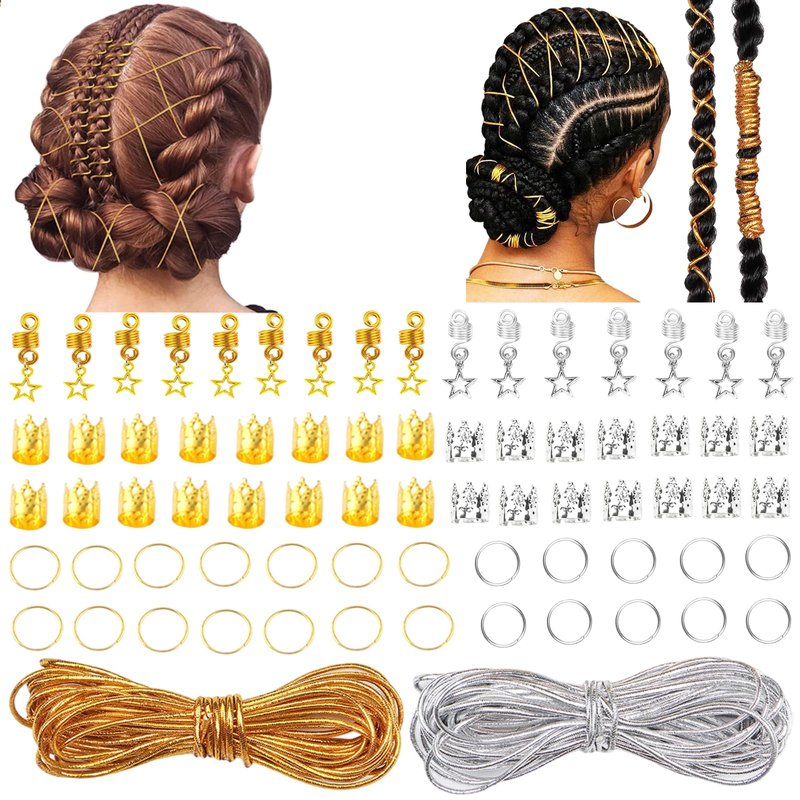 52 PCS Dreadlock Braids Hair Accessories Gold Silver Braiding Hair Star Deco Beads Hair Braid Clips Styling Shimmer Stretchable African Braid Braided Elastic Cord Ornament Hanging Decorating Wrapping