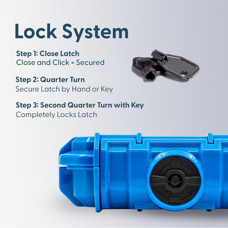 3 Step Locking Latch! - Step 1) Firm Latch Step 2) Twist Lock Step 3) Key Lock
