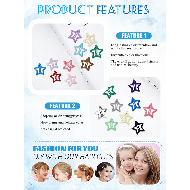 - ⭐【High-quality Material】These star snap button hair clips are made of high-quality metal, environmental protection spray paint, lightweight and durable, not easy to rust, prolong the service life.