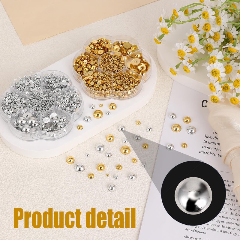 5300 Pcs Flatback Pearls for Crafting Gold Silver Half Pearls Beads Round Gems Mix Sizes Nail Pearls for Nail Art ABS Round Plastic Beads for Manicure Face Art DIY Crafts Jewelry