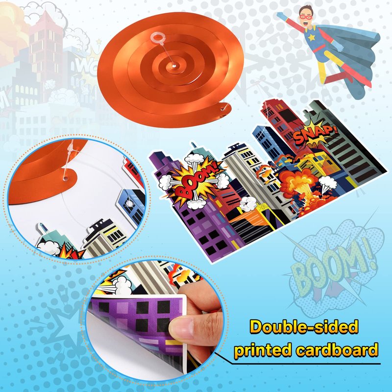 - Durable material: fun hero theme party decorations are made of metallic foil and quality card stock, the sign cutout will not fragile and not easy to bend, double-sided printed with beautiful pattern design will not outdated; These foil hanging swirls are durable, each has been individually cut, inspected, and carefully packaged, enough to be applied many times on different occasions
