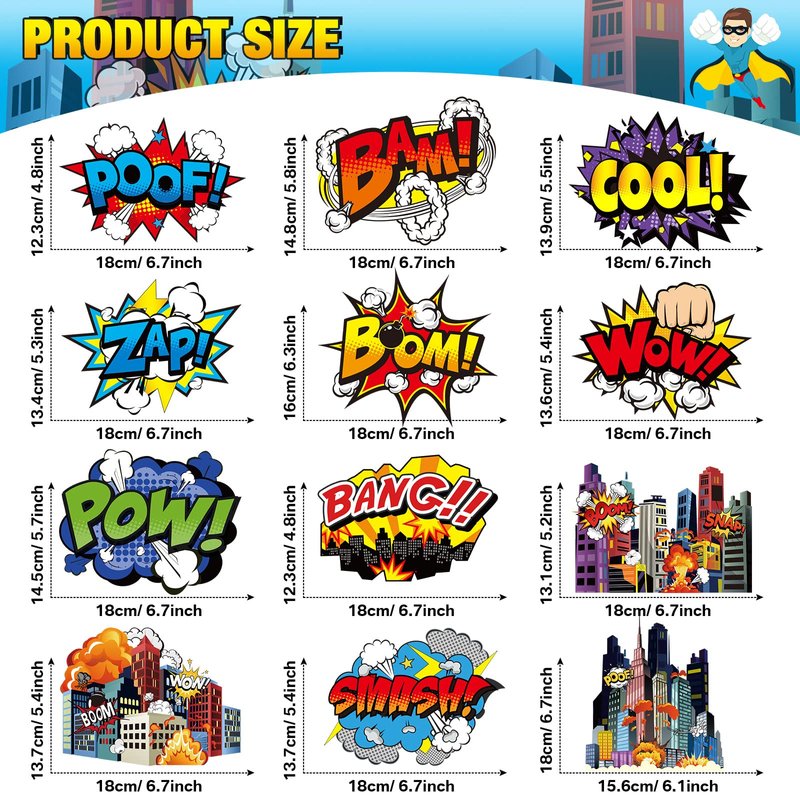 - Hero theme party design: each sign cutout of the foil ceiling hanging decoration has printed with different words, can apply as an amazing option to decorate your powerful hero party or your kids' room; Make hero memorable experience for you and your families atmosphere