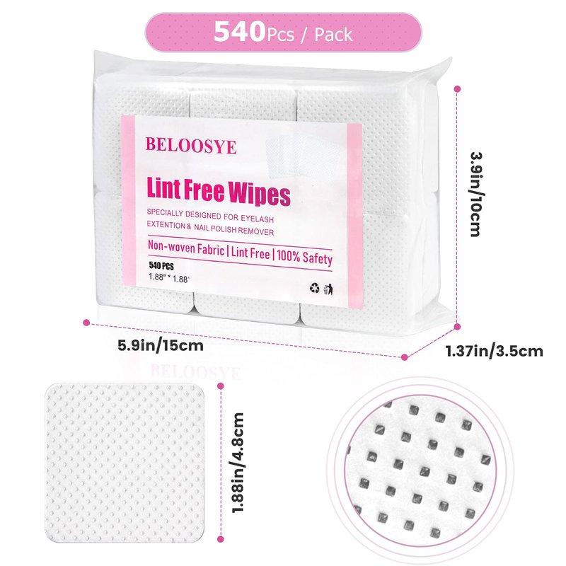 - 【LINT FREE NAIL WIPES】: BELOOSYE eyelash extension glue wipes is made of high quality non-woven fabric(Not Cotton), no scrap or crumbs shedding, lint-free, meet your high requirement for tidy and clean. Soft surface, strong water absorption and anti-static,ideal for professional salon and makeup use. Use our professional Glue Wiping Cloth instead of paper towels, to enhance the professional image of your salon, enhance customer’s trust and gain more praise.