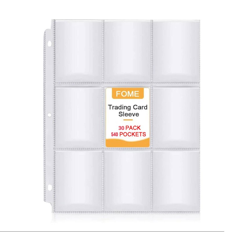 540 Pockets Baseball Card Sleeves, FOME Double Side 9-Pocket Trading Card Sleeve Page Protector 3 Holes Game Card Sleeves Fit 3 Ring Binder for Trading Baseball Game Business Cards 30 Pages