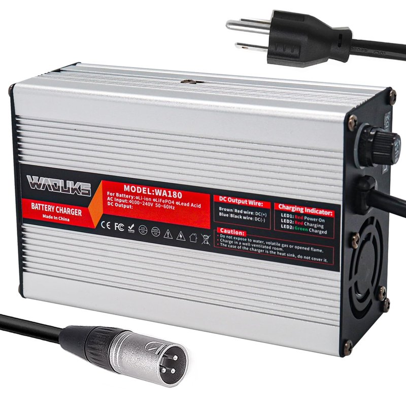 54.6V 3A Charger 48 Volt 3 Amp Lithium Battery Smart Charger Silver Aluminum Case with Cooling Fan Output XLR Connector Used for 13S 48V Li-ion Battery Pack