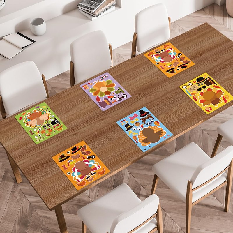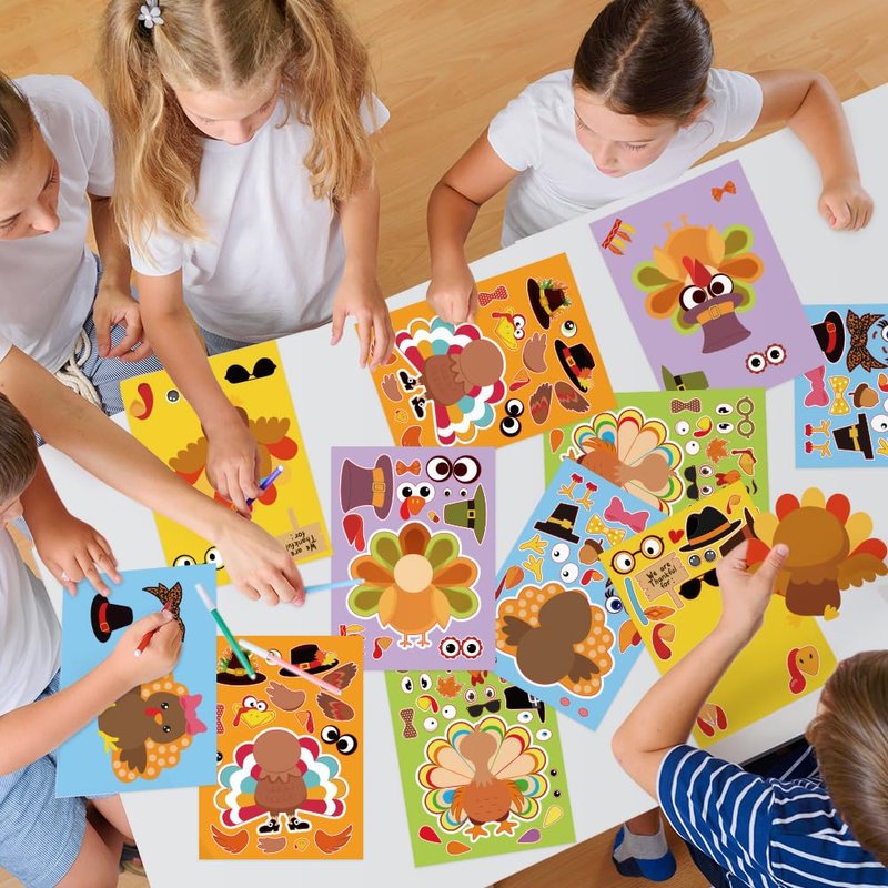 - 🍗Package Includes: 55 make-a-turkey sticker sheets, 5 designs, 11 of each