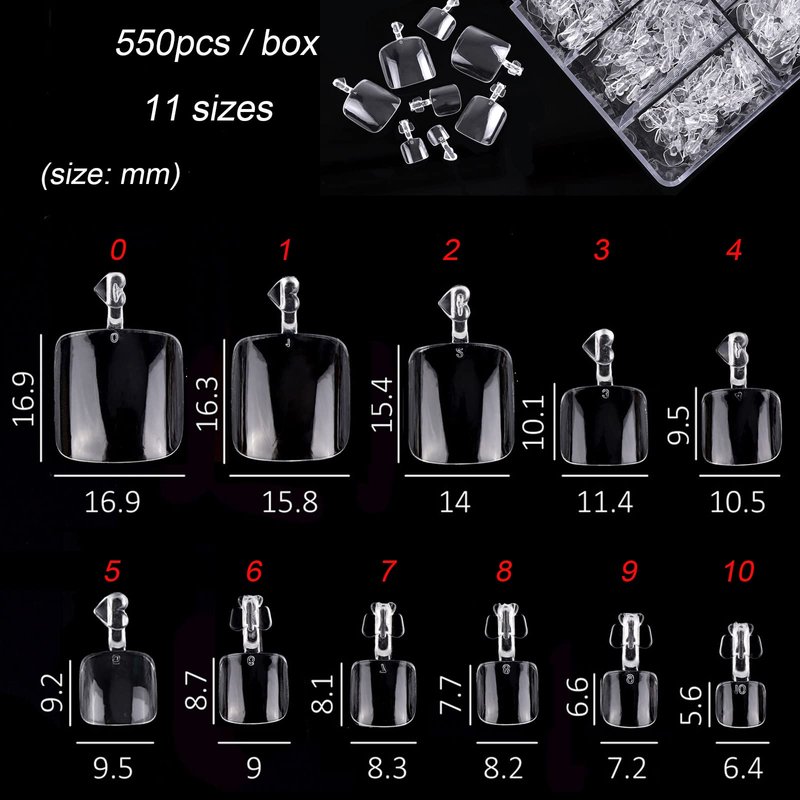 • Package comes with 550pcs acrylic toenails (WITHOUT GLUE).