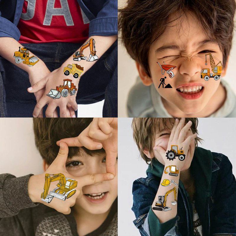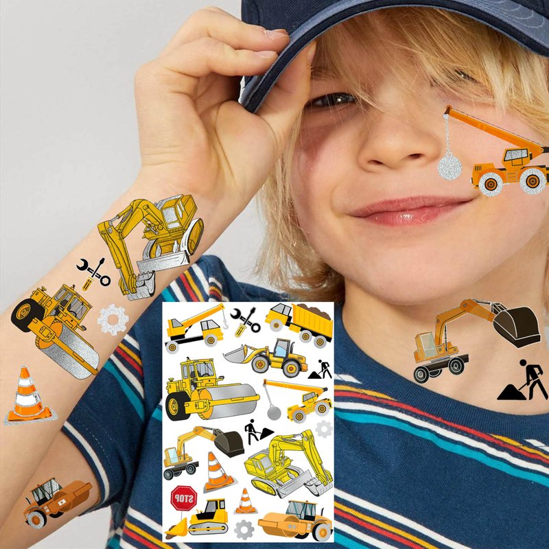 - 💕【4 Large Sheets 56+ Patterns Groovy Cartoon Construction Car Temporary Tattoos For Kids Boys Teens Girls】--VANTATY 3D Realistic Excavator Temporary Tattoos For Boys Girls Body Art Stickers Look Real! 【Click Our Store/Brand Name To See More Fashion Designs】 Bronzing Excavator Car, Crane, Engineering Vehicle, Bulldozer, Truck, Builder, Construction, Tractor, Zombie Makeup Kit Halloween Make UP.