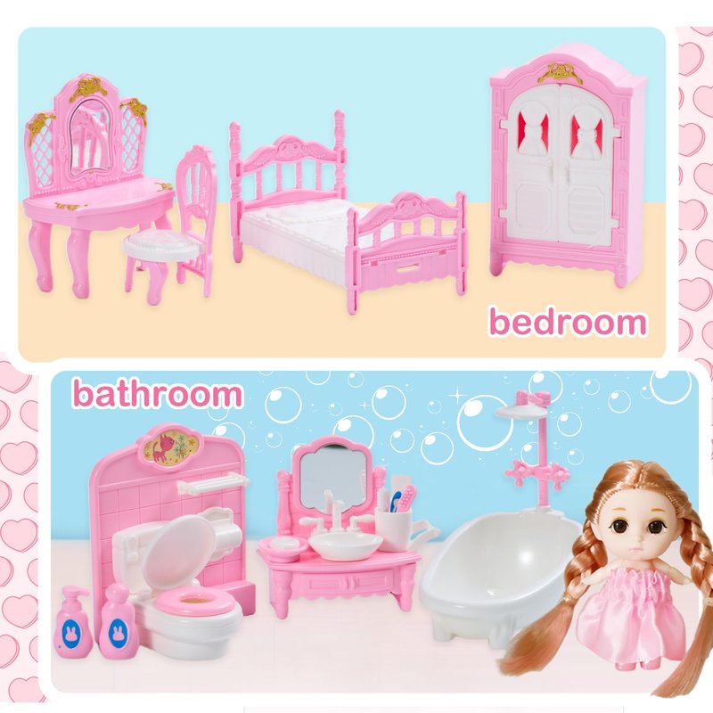 - 【High quality materials】All furniture accessories are made of high-quality ABS plastic material, non-toxic, BAP-free, sturdy and durable. All edges are rounded and polished, smooth and without rough surfaces, your children can play with confidence. The soft pink-white color is good for children's eyes when they play for long periods of time.