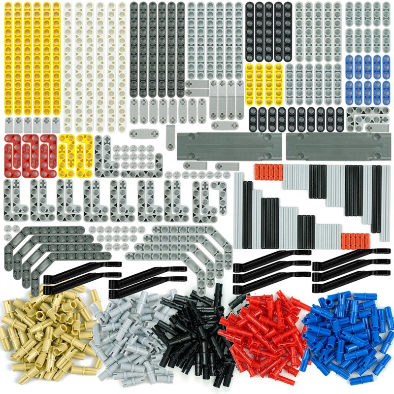 Pasacho technical liftarm technical parts pack includes 582pcs, specifically liftarm beams of different size, axles, pins, connectors, flat panels and etc.