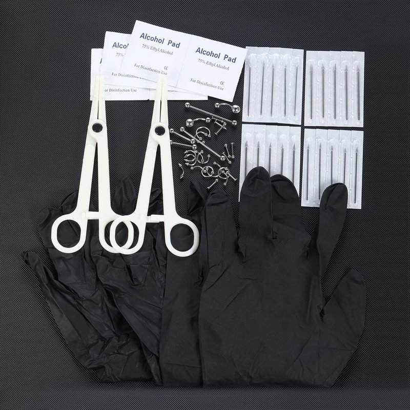 - 【 PERFECT PIERCING KIT 】 Professional body piercing kit includes almost everything you need for nose , ear , navel , eyebrow , tongue , lip Piercing . The piercing kit is suitable for professional piercing and personal piercing at home , which helps to save your time and money.