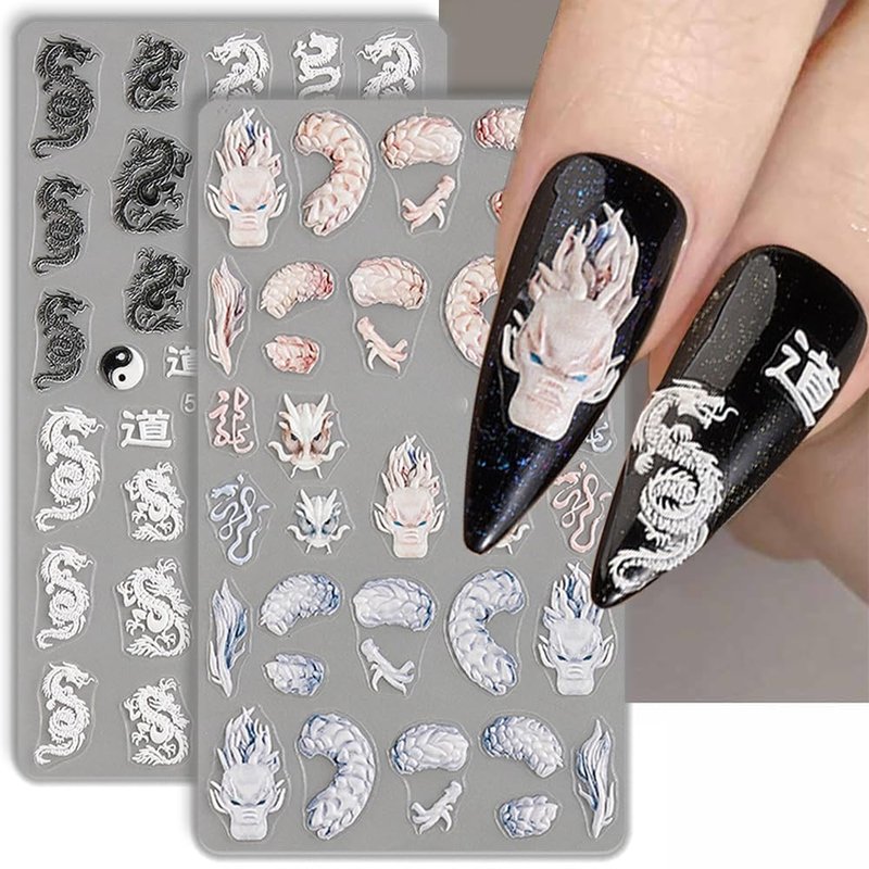 - √【Chinese Dragon Nail Art Stickers】The Chinese zodiac year "Dragon Year" is approaching, and you can use these 5D dragon stickers with friends to design your nails and welcome the Dragon Year with joy.