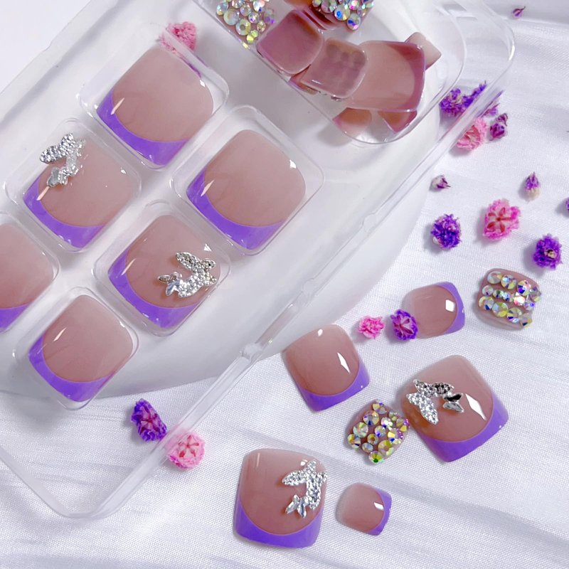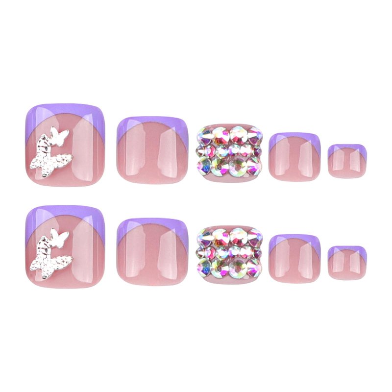 Item Type: 5D Butterfly Rhinestone Fake Toenails – French Tip