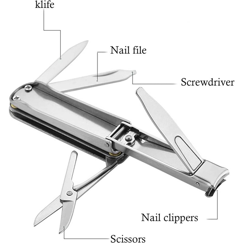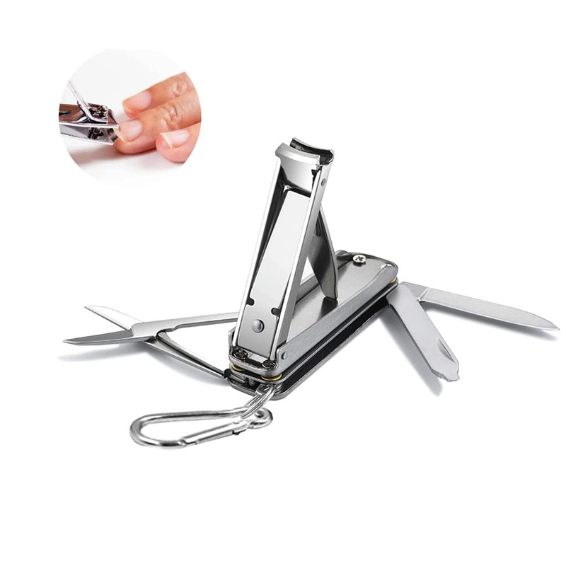 - Multifunctional Nail Clipper contains nail clipper, knife, nose hair clipper, nail file, screwdriver. It is the best product for emergency, travel, camping, fishing, hiking, survival, outdoor and simple trimming of nose hair.