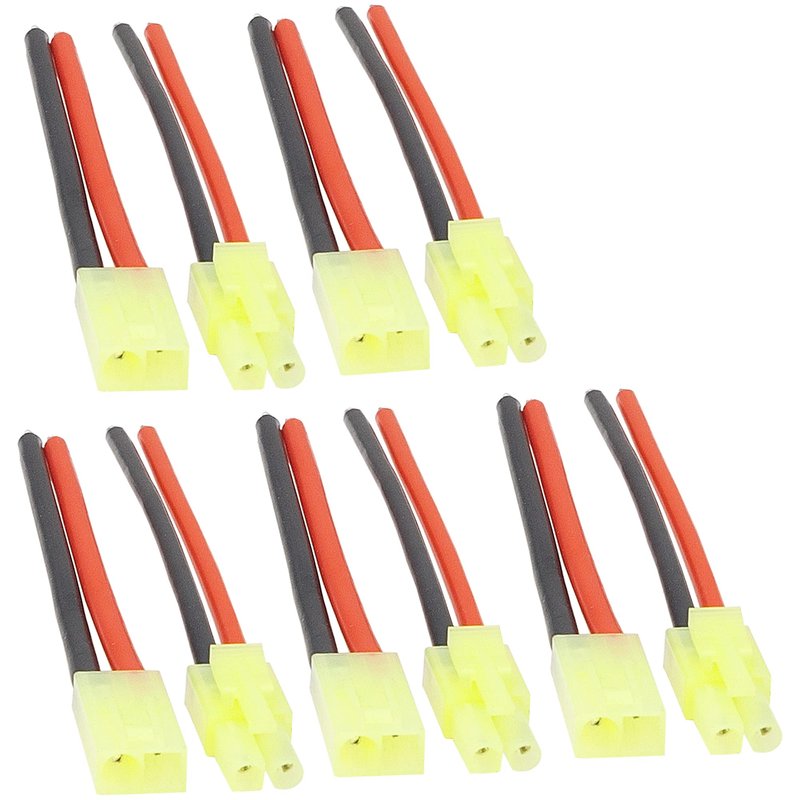 5Pairs HIRCQOO Adapter Compatible with Mini Tamiya Style Plug Male Female Connector (Reversed) with 3.93'' 16AWG Silicone Wire for Airsoft Gun
