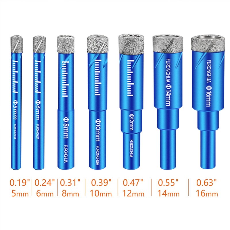 - Customer Support:The porcelain drill bits diameters from 3/16'', 1/4'', 5/16'', 3/8'', 1/2'', 9/16', 5/8'', 7 sizes to choose from, will meet most of your different needs. We stand behind our products, if you are not satisfied, please feel free to contact us. We will offer you the best way to solve any problem.