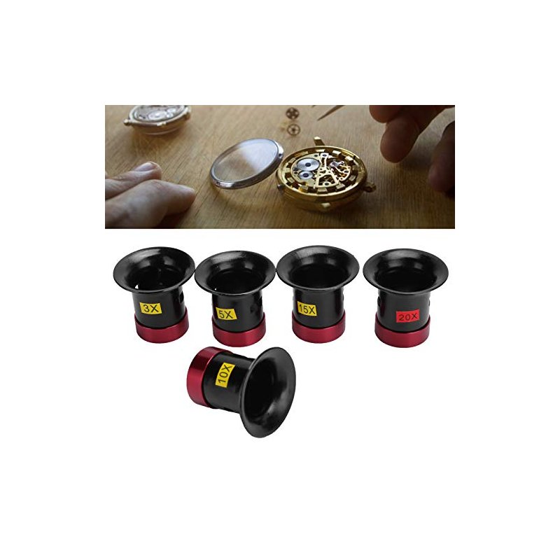 5Pcs Aluminum Alloy Magnifying Glasses, Watch Repair Glass Lens Magnifier Loupe Accessory Magnifying Glass for Watchmakers Eye Loupe Glass Tools
