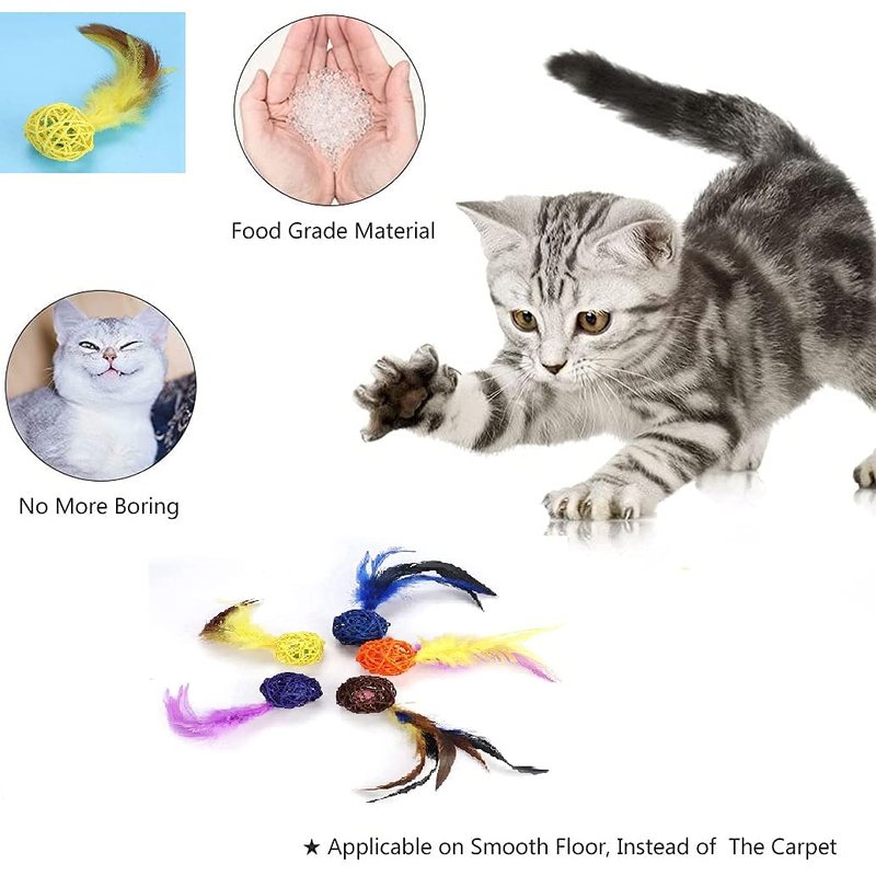 - Built-in Bell---These balls with colorful feather and built-in bells, which can make your pet play and increase the interaction with the pet.