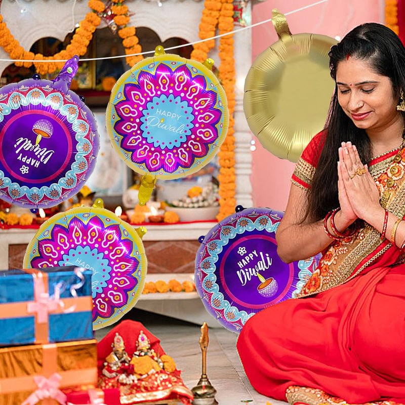 5PCS Diwali Decorations Diwali Balloons Happy Diwali Rangoli Party Decorations Diwali Foil Balloons for Indian Themed Deepavali Festival of Lights Party Decoration Supplies