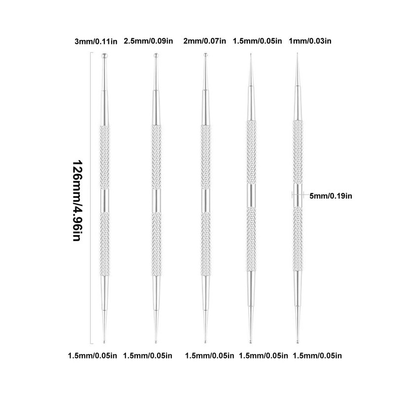 - ✅Sizes:The nail dotting tools come in 5 different diameters: 3mm/2.2mm/2mm/1.5mm/1mm. Suitable for dotting, tracing, transferring, embossing, painting and crafting, the