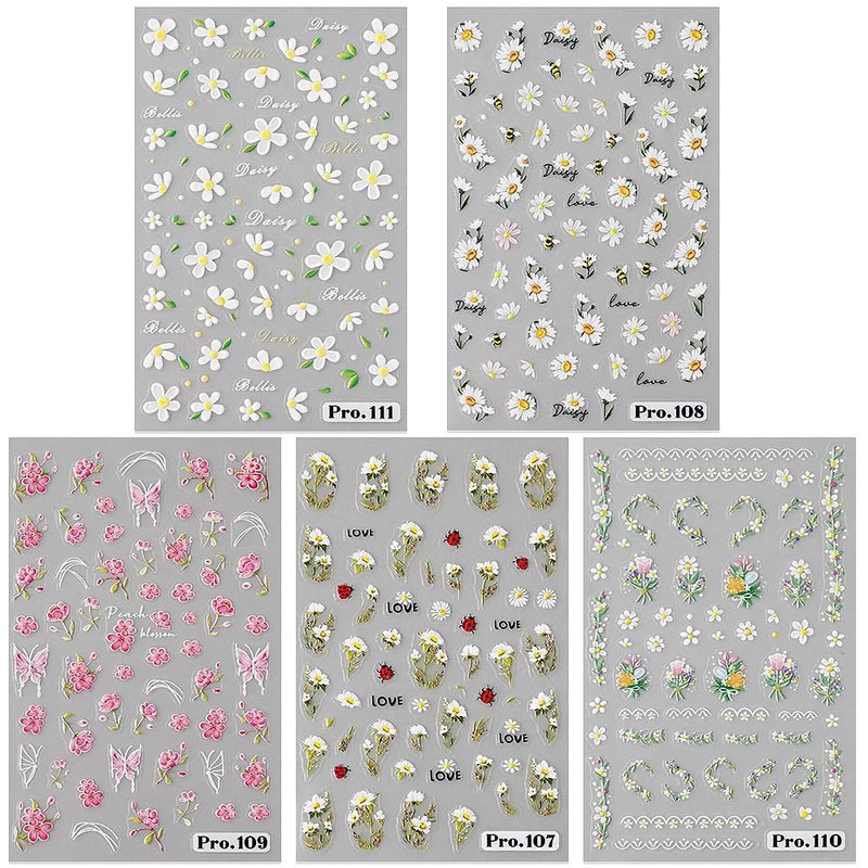 • 【Microcarving Embossed Floral Stickers】Micro-engraved floral stickers are prettier and more vivid than regular printed stickers, the embossed texture gives these daisy stickers a vintage and elegant-look, which will make your finger nails more exquisite.