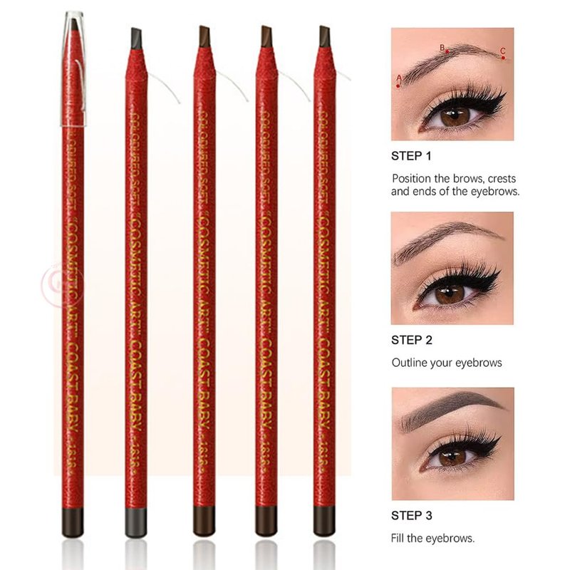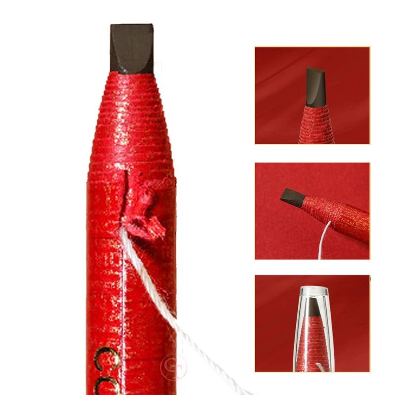 5pcs Eyebrow Pencil Waterproof Permanent Makeup Pencil Eyebrow Mapping Pencil Pull Cord Peel-off Eyebrows Tattoo Makeup Cosmetics Eyebrow Pencil (Red Paper-Deep Brown Core)