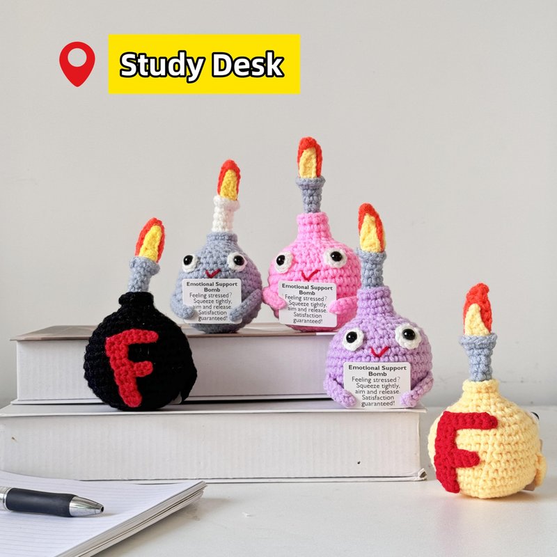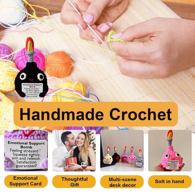 5PCS Handmade Crochet Bomb Desk Ornament,Crochet F-Bomb,Emotional Support Bomb,Stress Relief Gift,Mental Health Gift,Home/Office Desk Decor,Crochet Desk Toys, for Team/Colleagues/Friends