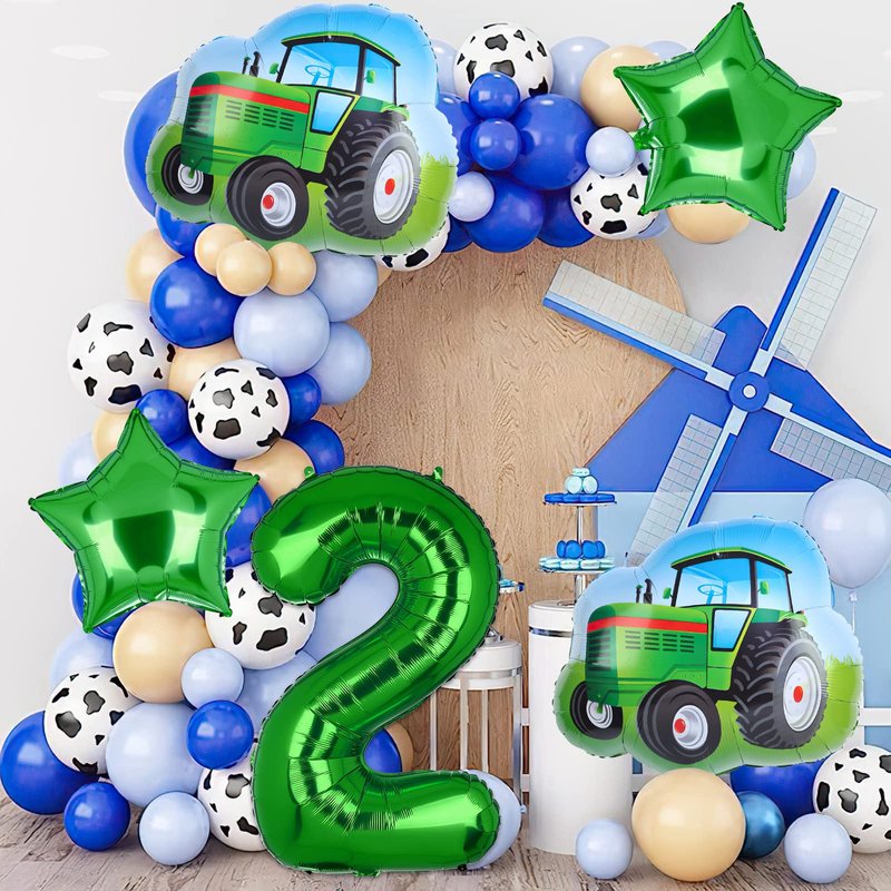 - Materials:The tractor balloons are made of high-quality aluminum foil material, the thick material makes it not easy to explode when it's inflated, safe to be used.The kit is very cute decorations for any tractor enthusiast!The big tractor, green balloons are a hit!!