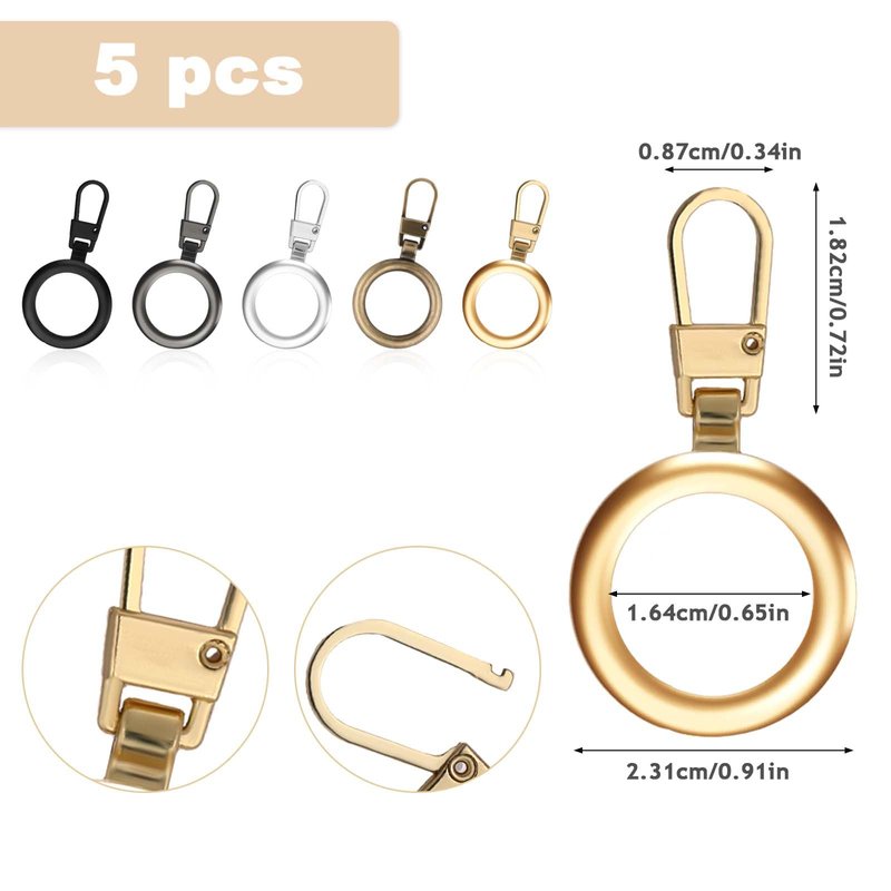- What you will receive: You will receive 5 round zipper replacement pulls in different colors, which are black, silver, gold, gun black, bronze, multiple colors and sufficient quantity to meet your different daily matching and replacement required.