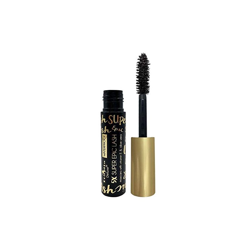 5x Super Epic Lash Mascara With Jumbo Brush. Intensely black, voluptuous formula mascara with Vitamin E & Aloe Vera. Waterproof.