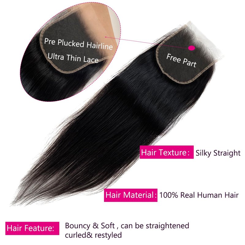 Hair Material: 100% unprocessed vrigin human hair closure extensions.