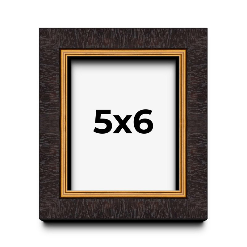 5x6 Frame Brown Walnut & Gold Trim Solid Wood Chaps Picture Frame | 1.25 Inch Moulding Width | 0.44 Inch Deep | Includes Shatter Resistant Acrylic Plexiglass, Foamboard Backing and Hanging Hardware