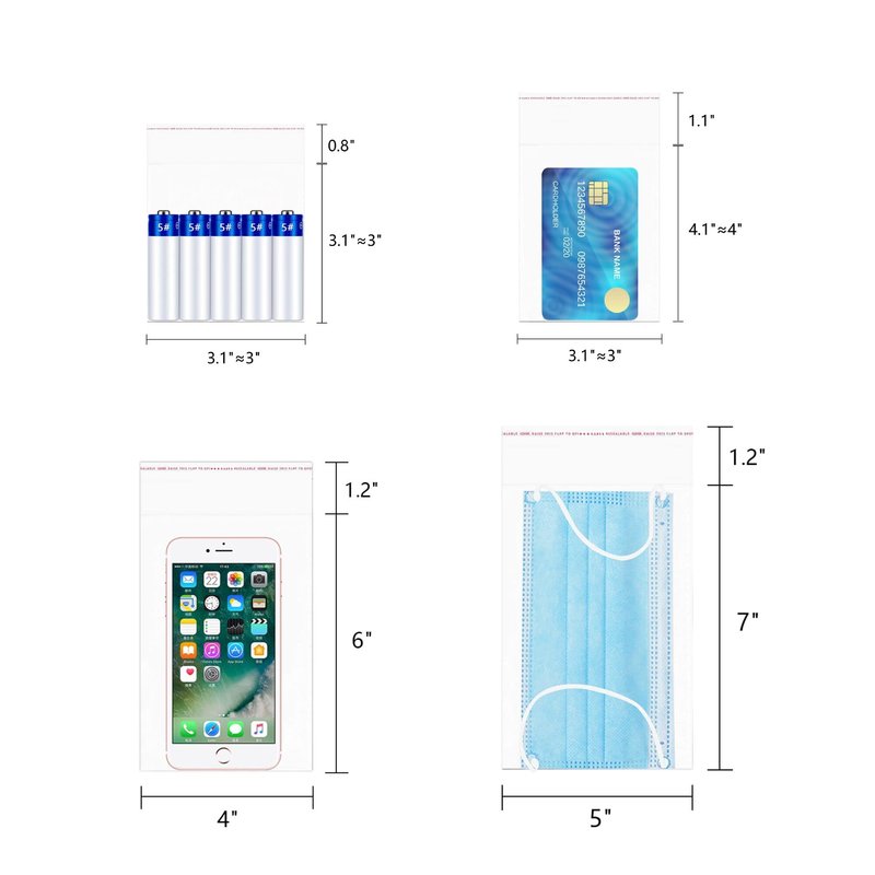 - Self stick plastic cello bags 5x7"(flap not included), 200pcs, 2mil thick (double-sided).