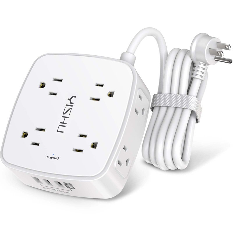 - 【Multi Safety Protection】- RoHS, FCC and ETL Certificates. This power strip has overload protection, short-circuit protection, over current protection, over-voltage protection and overheating protection. The surge protector with overload protection protects your electrical appliances from lighting, surges or spikes. The minimum energy-absorbing capacity of 600 Joules. It will automatically cut power to protect connected devices when voltage surge is overwhelming.