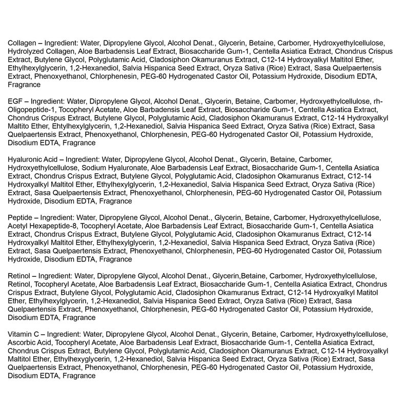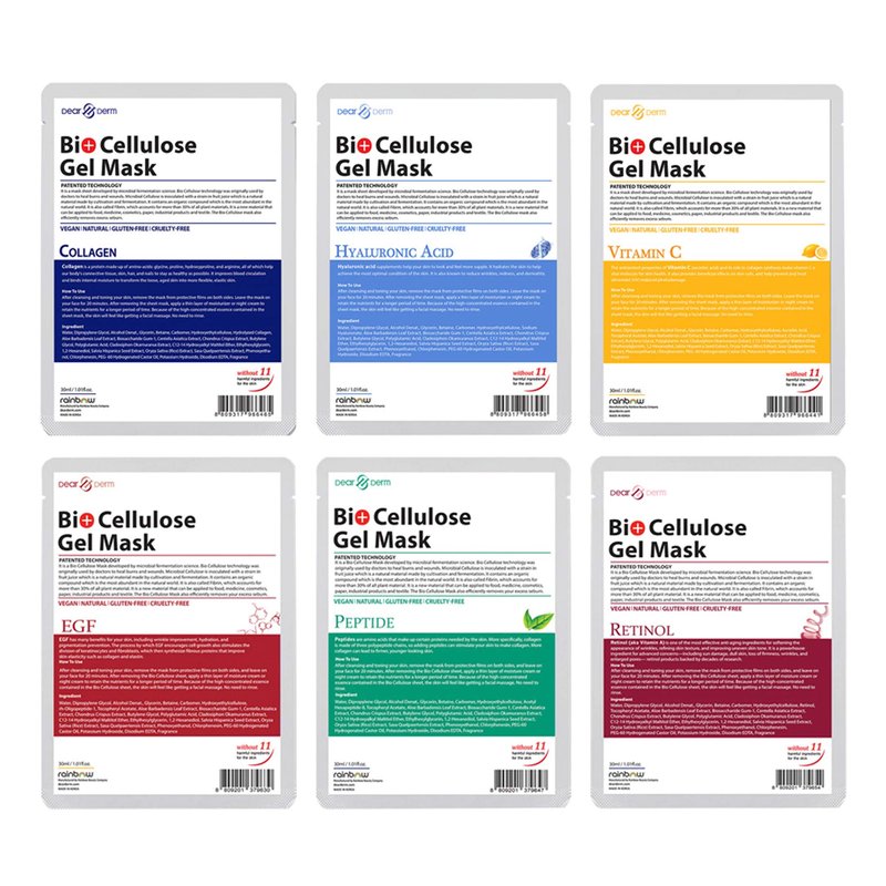 - 6 Gel Masks Assorted - Bio Cellulose Gel Sheet Mask – Collagen, EGF, Hyaluronic Acid, Peptide, Retinol, Vitamin C (6pcs in total)
