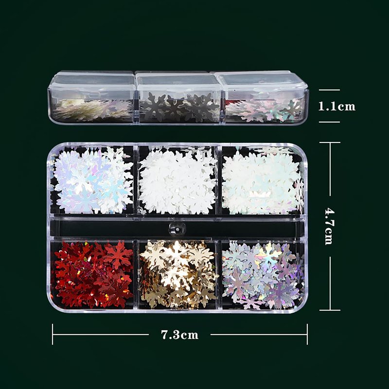 - 【Snowflake Glitter for Nails】- Snowflake nail sequins have 6 different colors, each of which is carefully selected and packaged in a storage box. You can choose different colors to decorate the nails, create a variety of dazzling snowflake nail decor.
