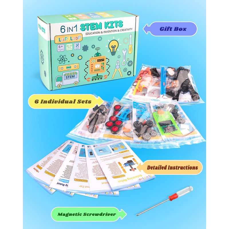 Unleash your child's creativity and problem-solving skills with this comprehensive 6-in-1 STEM Kit. Designed for kids aged 6-12, this educational kit includes exciting projects such as robot building, car crafts, and science experiments, offering hours of hands-on fun while teaching valuable STEM concepts.