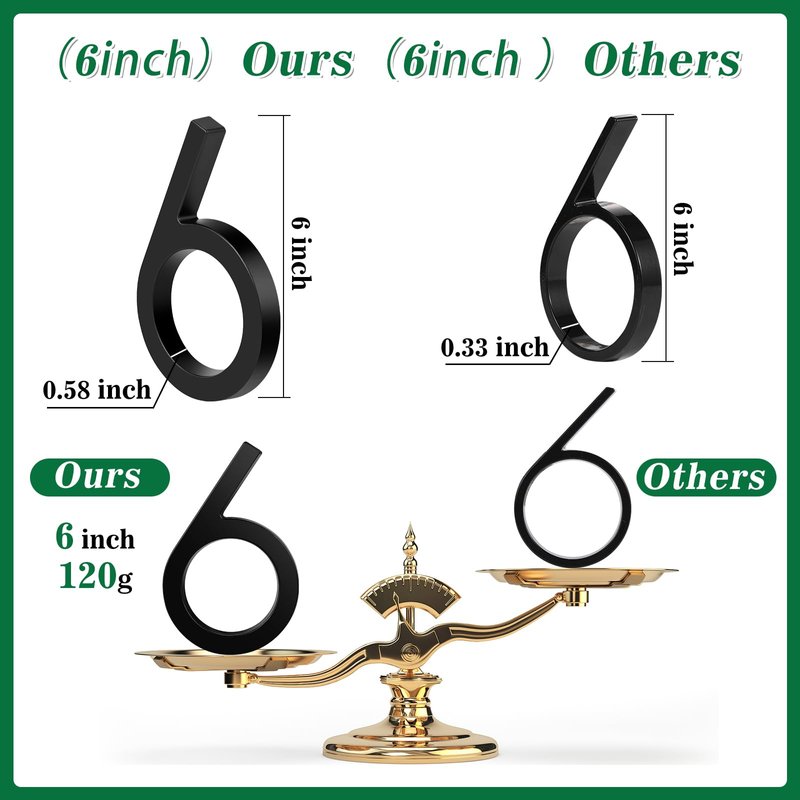- ❤Wide Applications:6 inch house numbers for outside can add visual appeal to any space that needs to be identified, they can be widely used in houses, gardens, mailboxes,streets,villa office and shop etc and so on, bringing a lot of convenience to our daily lives.