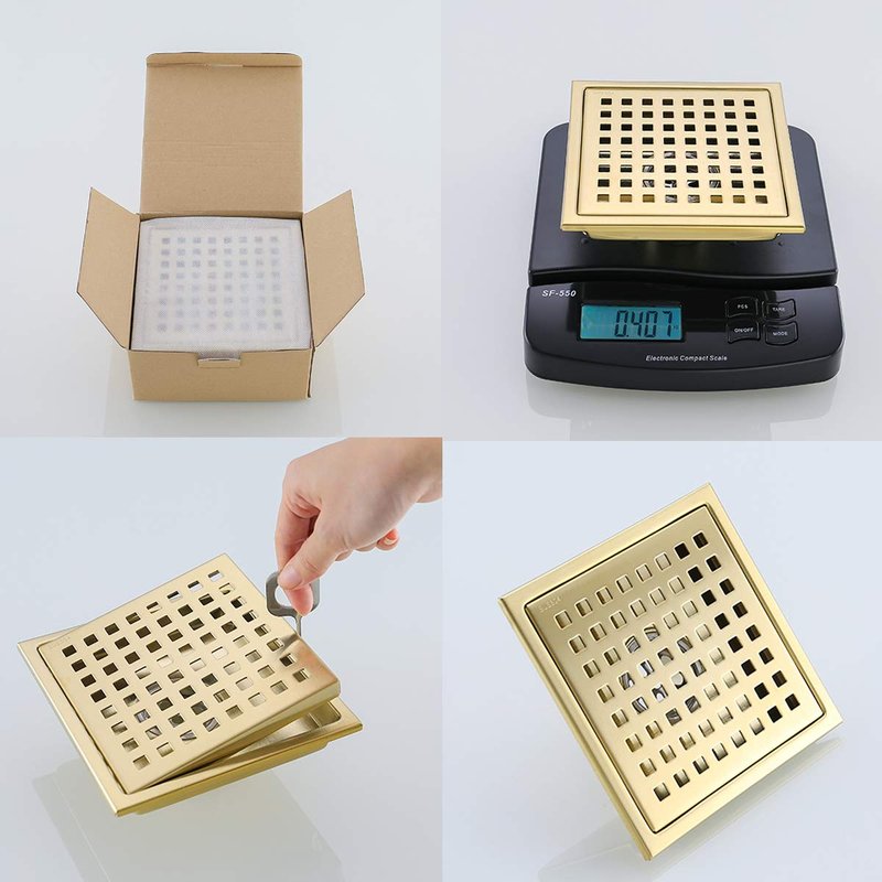 6-inch SUS304 Stainless Steel Square Shower Floor Drain with Tile Insert Grate Removable Multipurpose Invisible Look or Flat Cover,Brushed Stainless