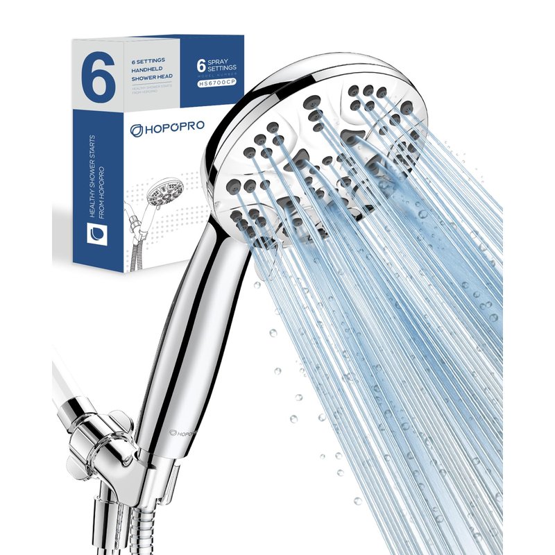 6-Mode High Pressure Handheld Shower Head Set, Consumer Reports Recommended HOPOPRO High Flow Hand Held Showerhead with 59 Inch Hose Bracket Teflon Tape Rubber Washers