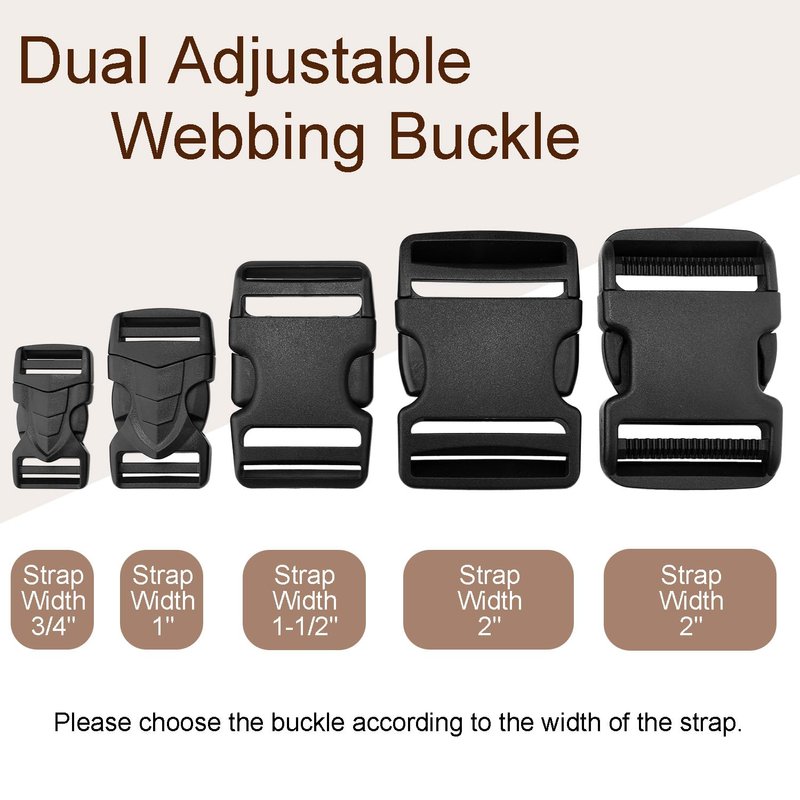 - 【NO Sewing Strap Buckle】Compared with Ordinary Buckles that require sewing, Our 3/4" Wide Dual Side Adjustable Plastic Buckle No sewing, You can adjust the length of the 3/4" strap at any time by buckle on both sides
