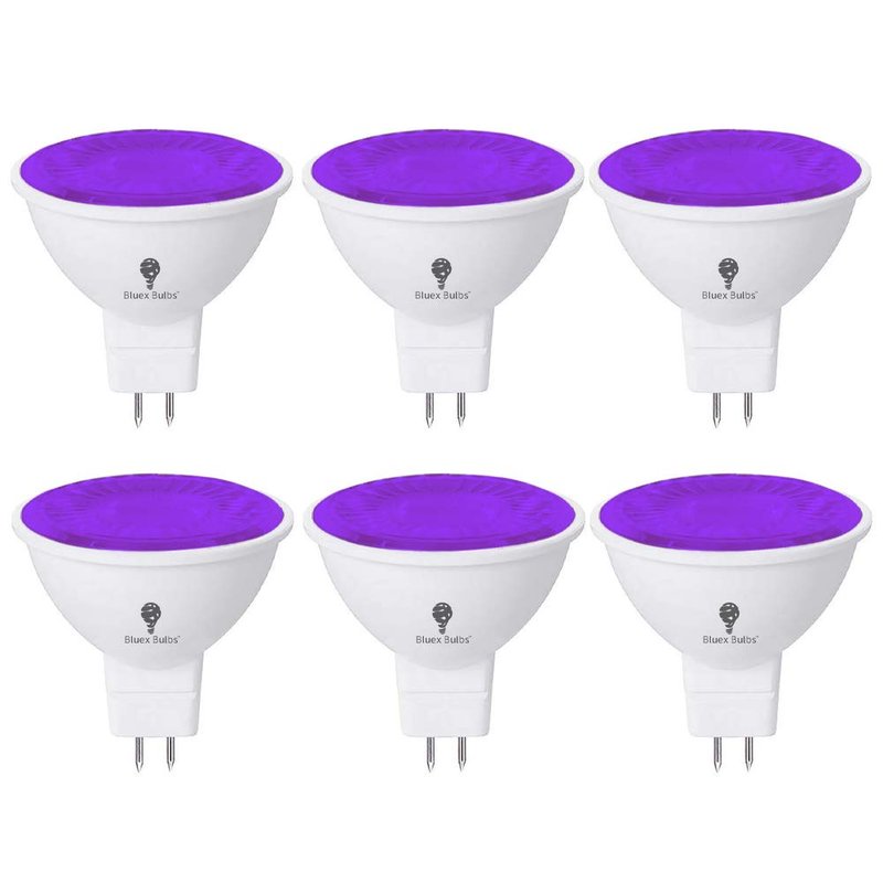 6 Pack BlueX LED MR16 Purple Light Bulb - 6W (50Watt Equivalent) - GU5.3 Bi-Pin Base 12V Purple LED Purple Bulb, Party Decoration, Porch, Home, Holiday Lighting, Decorative Illumination MR16 LED Bulb