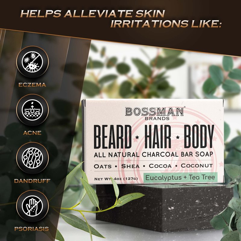 - Signature Bossman Scent Made from Essential Oils: Our beard shampoo and mens bar soap is infused with just the right touch of carefully selected essential oils like Eucalyptus, Tea Tree, Lemongrass, and Lime. It creates a manly scent that's clean, yet seductive and perfect for close encounters